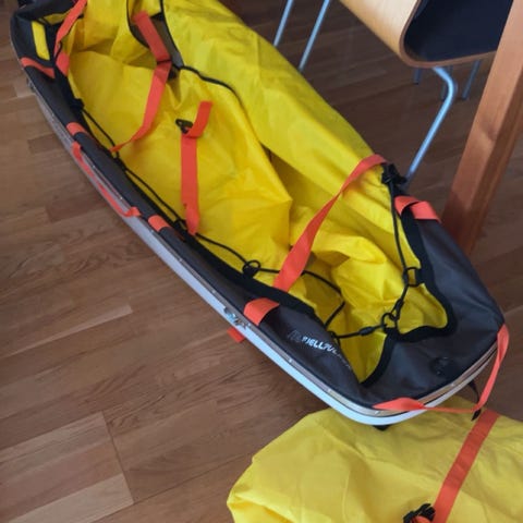 Medfølger forsterket drag, samt to ekstra fester til drag/pulk.