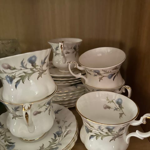 Beige med små blomster,ingen hakk el. nag