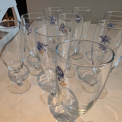 Vinglass fra France Luminare stk 11 stk. Veldig fin stand. Mål på bilder . Har også et med et lite skår , kan sendes med hvis ønskelig. Se bilde. Selges samlet 425kr.