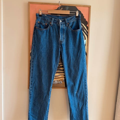Levi's 501 jeans i grå farge, størrelse W26 og dame S. Laget i denimmateriale med knappelukking og klassisk fem-lommers design.