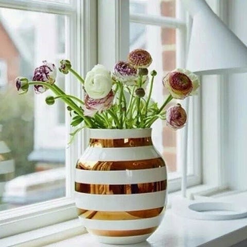 Denne store vase med skinnende sølvstriper fra Kählers populære Omaggio-serie er den perfekte gulvvase eller et nydelig blikkfang på spisebordet. Vasens størrelse gjør den perfekt til vårens friske greiner eller elegante og høye blomster, som kan skinne om kapp med vasen. Vasen har en tidløs look som gjør den egnet til alle hjem, uansett innredning og størrelse.