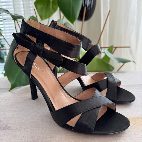 Pent brukte Anna Field høye hæler str. 39 – svart, åpen tå, ankle strap