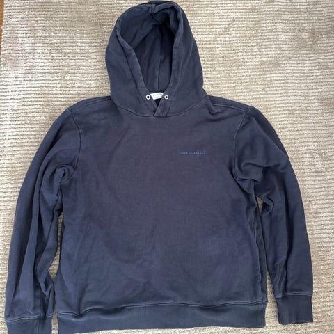 Moods of Norway hettegenser i blå farge, størrelse L for menn. Genseren har hette og er laget i et materiale som gir komfort og varme. Passer til hverdagsbruk og uformelle anledninger.