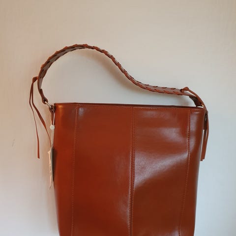 Nydelig veske i mykt nappaskinn med quilted mønster. Vesken har en gullfarget skulderlenke og bærehåndtak. Den har ett hovedrom og to innerlommer, den ene er med glidelås. Lukkes med klaff og magnetknapp. Nypris 2.800,-