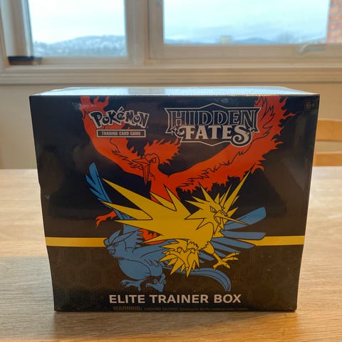 Selger en forseglet case med Hidden Fates ETBer.