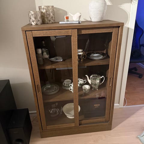 Kjøpt på IKEA for noen måneder siden. Skiftet til gull farget knatter og montert ledd-lys i skapet. Ingen skader, selges grunnet plassmangel.