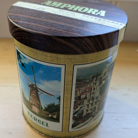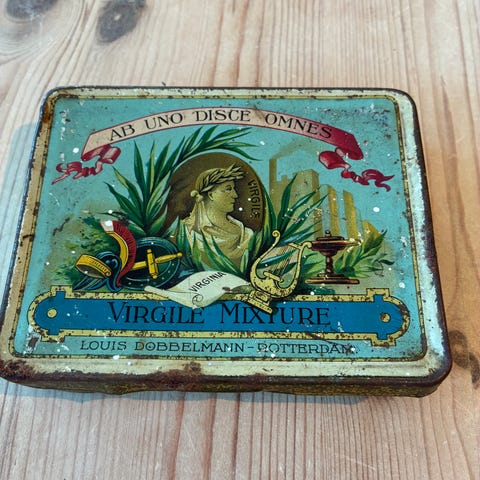 Vintage tobacco box Dill's Best, ca 15, 5 x 8, 5 x 3 cm. Smoking tovacco. J. G. Gill and co, Richmond, VA, U.S.A. Boksen kan helt klart renses bedre, jeg prøvde på én boks med spritvarianter og ødela fargene, så siden har jeg vasket med Zalovann, og overlater evt videre rens til en ny eier som forstår seg bedre på slikt enn meg.