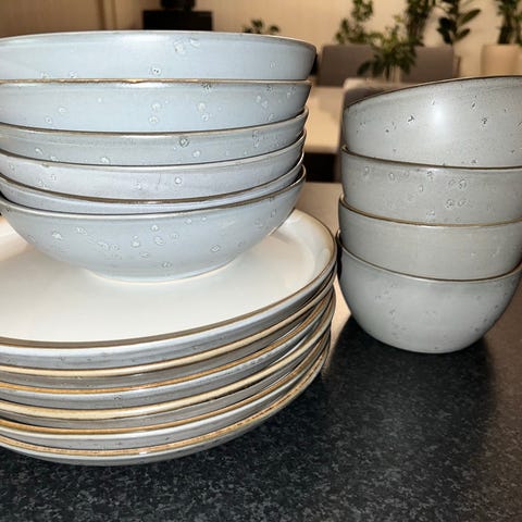 8 x frokosttallerkner - 500kr (1 grønn, 2 sorte solgt)
