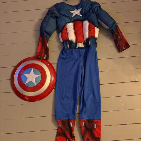 Marvel Captain America Barneklær Kostyme i størrelse 10 år, unisex. Kostymet er laget av polyester og inkluderer detaljer som Captain Americas emblem og farger. Passer for barn i alderen 9-10 år. Egnet for bruk ved kostymefester eller lek.