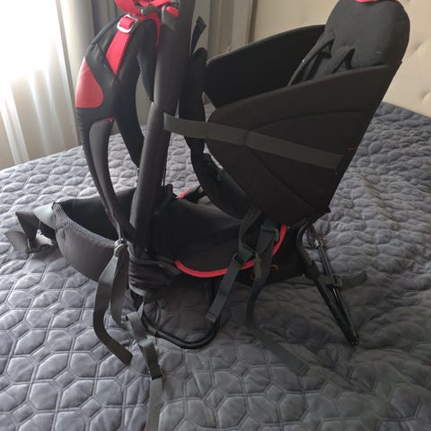 Komfortabel og praktisk bæremeis. Vi har hatt flere bæremeiser, men denne har vært den beste. Ungene har vokse ut av den, så vi selger videre. Bæremeisen inkluderer også regnbeskyttelse. Ryggen kan justeres. Alt fungerer.