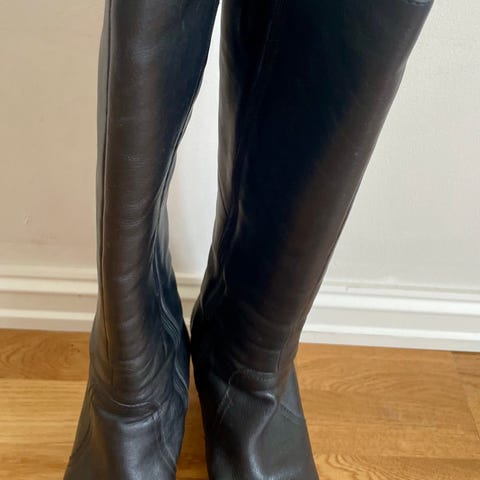 Lite brukt Skinnstøvletter med mykt skinn. Meget gode å gå i. Oppbevart stående med stiv papp i skaftet for å holde fin fasong.