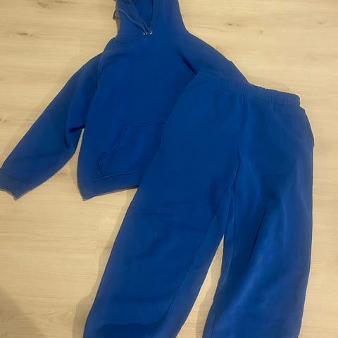 Komfortabelt og stilig joggesett i beige farge, bestående av hettegenser og matchende bukse. Passer perfekt til hverdag . Størrelse M. I god stand.