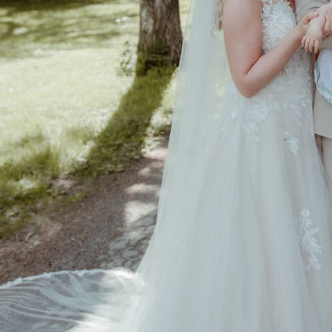 Pent brukt brudekjole.
