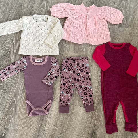 Nydelig klespakke med hjemmestrikket deilig mykt ullsett samt body fra merket En Fant ✨ Kjempefint til fotografering ✨ Fikk dessverre ikke brukt dette, bare vasket det.