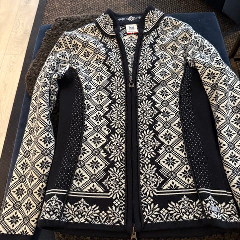 Selger en jakke i 100% ull str. M fra Dale of Norway. Modellen heter Christiania og fargekombo er utgått. Pris for ny jakke er 4500 kr. Pent brukt. Normal i størrelsen. Fargen er mørk grå/blå.