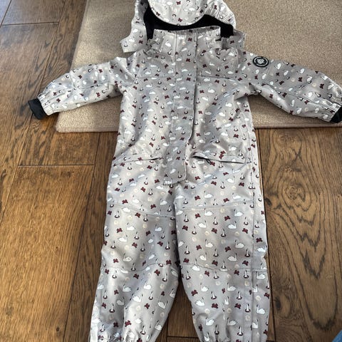 Wheat barnejakke i størrelse 74 for gutt. Jakken er blå og har hette med fuskepels. Den er designet for å gi varme og beskyttelse i kaldt vær, med refleksdetaljer for økt synlighet.