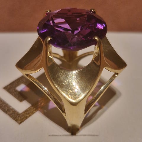 Størrelse 55,5 Stempel på karat 585. Lyseblå safir. Designet av, Ivar T Holth.