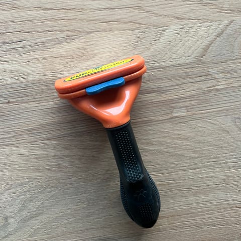 Furminator badebørste. For pelsstell under bad/i dusj. Fjerner løse hår og masserer huden under bading. Man kan fylle på sjampo som fordeles jevnt under bading.