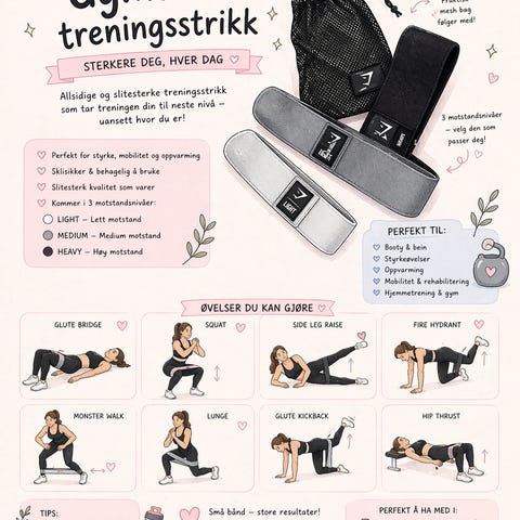 Better Bodies Resistance Mini Bands treningsstrikker i tre motstandsnivåer: Lett (15 kg), Medium (25 kg), Tung (35 kg). Laget for muskelaktivering og motstandstrening. Leveres i en oppbevaringspose for enkel transport og oppbevaring.