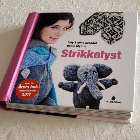 Mange fine oppskrifter. Egen strikkeskole bak.