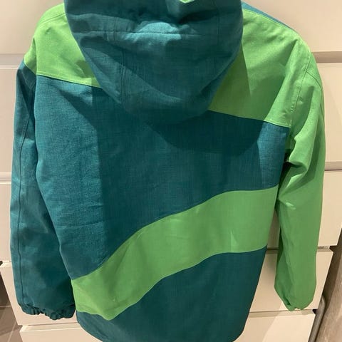 Skogstad barn jakke og bukse sett i størrelse 164/14 år for gutt. Jakken er blå med glidelåslommer og hette, laget for utendørs bruk. Buksen er svart med forsterkede områder på knærne, designet for slitestyrke og komfort.