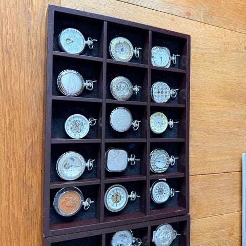 Vintage golfminnesmerke-samleboks til å henge på veggen. Hver ball har en messingplakett under. Innrammet med glassfront.