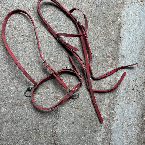 Kryssnesereim og gapegrime i lær. Kan også selges seperat