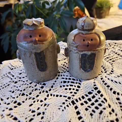 To keramiske salt- og pepperbøsser formet som hunder.