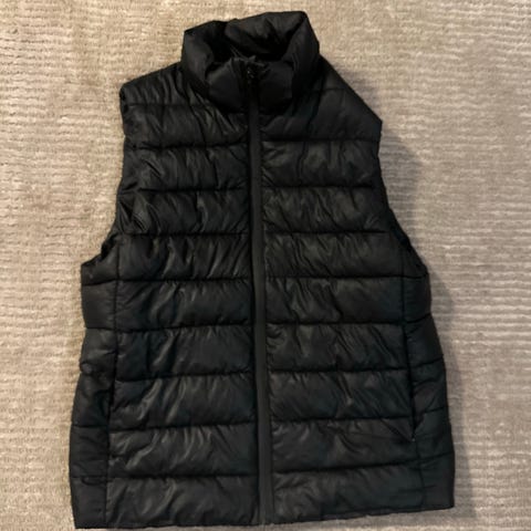 Hettevest fra KappAhl i str. 146/152, farge sort med hvit tekst.