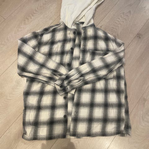 H&M Basic hettevest for barn i størrelse 146/152, 10-12 år. Grå farge. 80 % bomull og 20 % polyester. Vesten har hette, glidelås foran og lommer.