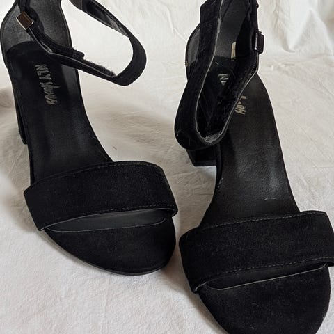 Godt brukt høye hæler. De er utslitt der foten skal sitte, men ser ellers veldig fine ut.