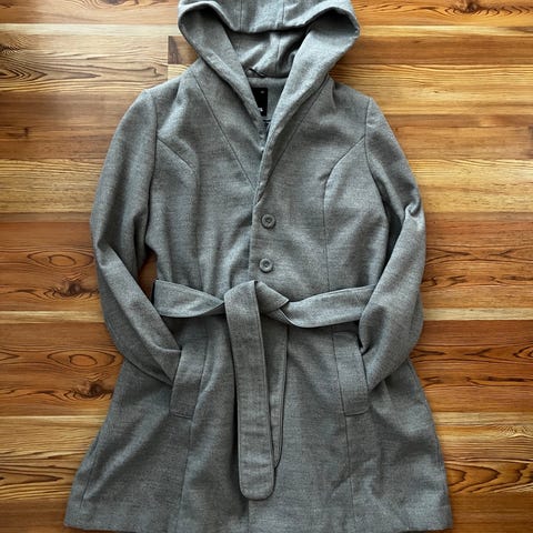 Laget av polyester. Sømmen har gått opp litt i ene ermet, noe som enkelt kan sys
