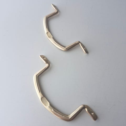 Dørhengsel i messing, 2 stk inkludert skruer. Hengslene har dekorative spisse ender og er egnet for montering på dører. Materiale: messing. Leveres i original emballasje.