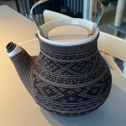 Eva Solo termokanne i hvit plast med håndtak. Kannen har en smal tut for enkel helling og et lokk som holder på varmen. Egnet for oppbevaring av varme drikker.
