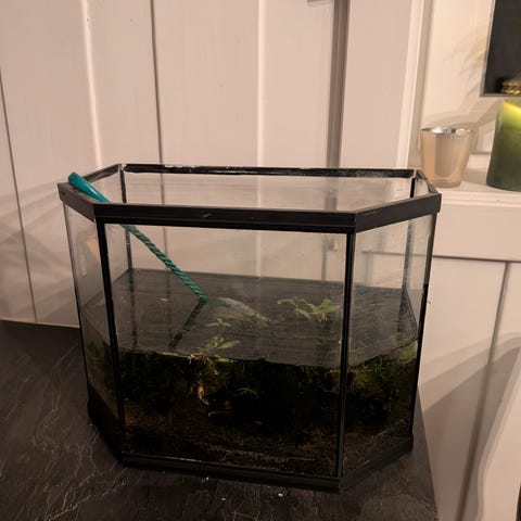 Alt utstyr følger med, terrarie fra reptilbygg (B: 110, D: 50, H: 50 cm), varmematter, termostater, bark, huler, falske planter, vannskål, termostat/hygrometer osv.