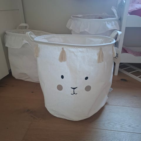 2 stk «poser» til oppbevaring av leker o.l. fra Form Living. 60% bomull / 40% polyester.