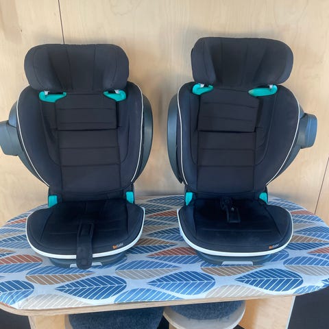 BeSafe Barnesete med størrelse 36 cm, i lilla og grå farger. Setet er laget for barn og har funksjoner som gir støtte og sikkerhet under biltransport.