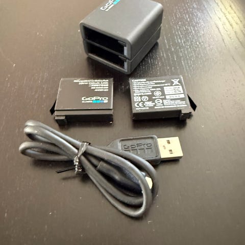 Selger en original GoPro Dual Battery Charger med to oppladbare batterier.