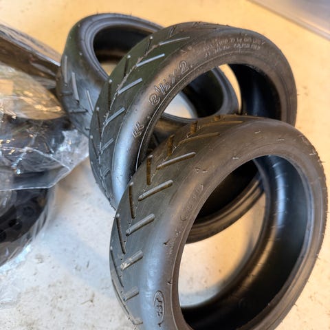 To dekk med slanger til El sparkesykkel selges billig.