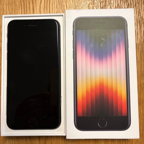Selger en Apple iPhone SE 2022 (3. generasjon) med 128 GB lagringsplass.