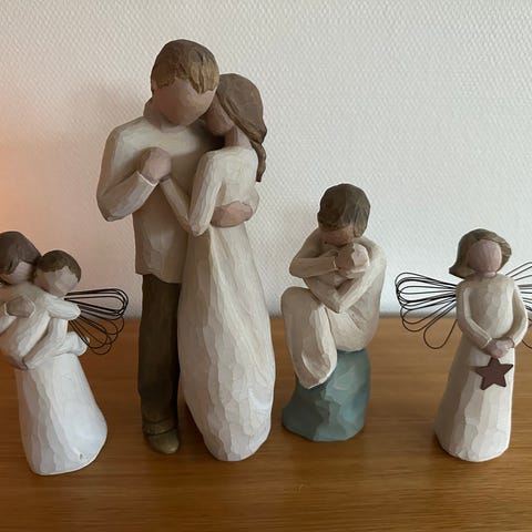 3 store og 2 små willow tree figurer i god stand. Har for det meste stått inni ett vitrineskap.