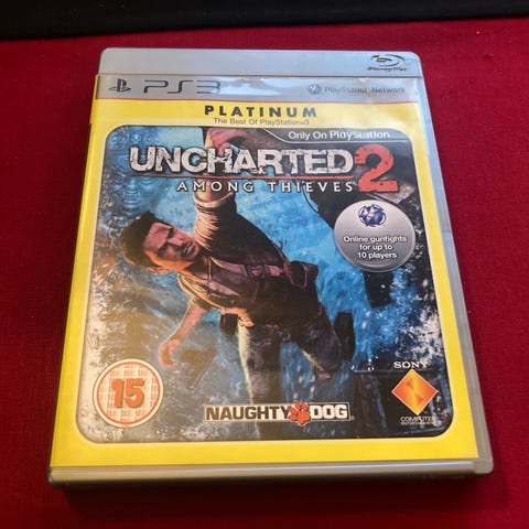 Naughty Dog Uncharted 2 Among Thieves Playstation 3 spill i Platinum-utgave. Spillet har aldersgrense 16 år og leveres i original plastikkpakning med spilldisk og cover. Passer for Playstation 3 konsoll.