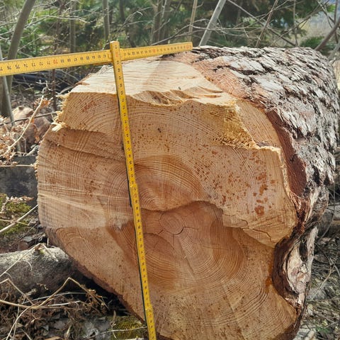 Tresøyle 16 x16 cm med utskjæringer. Ikke impregnert. Lengde 2,9 meter men kan med fordel kappes av 10 cm i bunnen da den er litt dårlig der.
