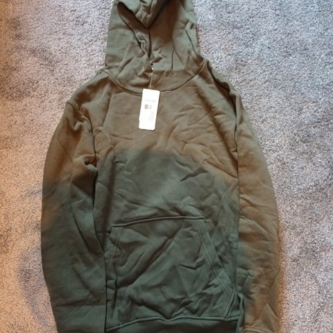 Bilde 1: Hust&Claire grønn hoodie, 100% merinoull. Ord.pris 500kr, selger for 300kr