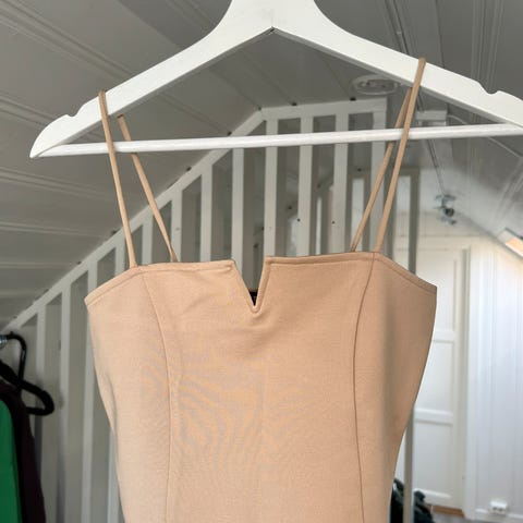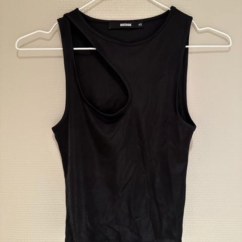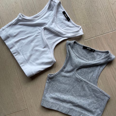 Bik Bok tanktopp i størrelse XS, grå farge. Laget av mykt materiale, egnet for kvinner. Enkel og funksjonell design. Noe gult skjær bakerst