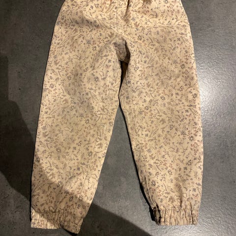Wheat Barneklær Bukse i størrelse 98, grå farge, designet for unisex. Buksen har elastiske mansjetter ved bena med feste for sko, og en elastisk midje for komfort. Materialet og detaljer er tilpasset barn i denne aldersgruppen.