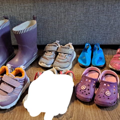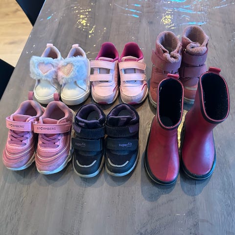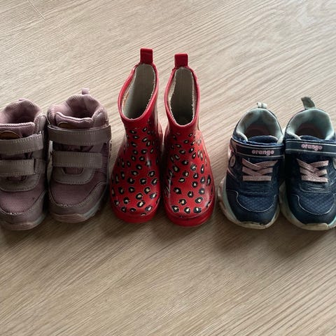 Skoa er med bruksmerker men hele, uten store skader. Passer fint til ă bruke f.eks. i barnehagen.
