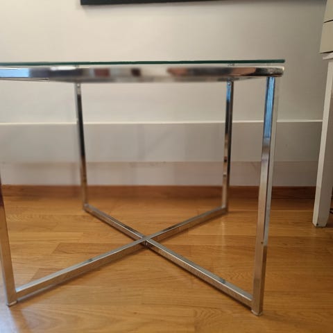 Mørk grå glassplate til å legge oppå en pall (puff) slik at den kan brukes som et bord. Str. 60 x 90 cm.