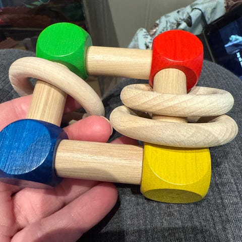 Eichhorn-tog i FSC®-merket tre med to vogner og 13 treklosser i fine farger og mønstre. L: 29 cm. Fra 1 år