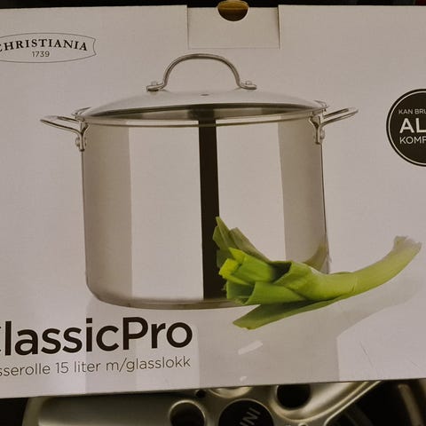 Flott kjele fra Modern House - brukt kun en gang. Kjøpt i oktober - har kvittering. Som ny! Passer til både supper, gryteretter, fårikål og skalldyr. Har stålkurv som kan tas ut. Kjøpt på Tilbords for en måned siden. Les mer her: https://www.tilbords.no/kjokken/gryter-og-panner/gryter-og-kjeler/modern-house-black-copper-gryte-m-dampkurv-18l-svart-kobber/